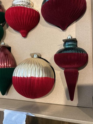 This ornament set is gorgeous and the perfect addition to our current set. They wonderfully combine the flocked trend with the traditional red, green, and gold color scheme. With the variable shades of red and green they would match almost any decor you already have. They feel sturdy and are shatterproof, which is a must with my littles and pets. Highly recommend to add to your tree decor for the holiday season!
