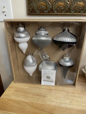 Add a touch of magic to your tree with this 6-Count Christmas Ornament Set from Wondershop™. This set includes six beautiful Christmas ornaments, each with its own unique pattern in gray and black hues for a sophisticated look. The semi-flocked design and semi-shiny finish make the ornaments reflect light for a shimmering effect, and the hanging clips make them easy to hang from your tree's branches.
