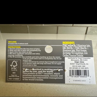 Box says “6 boxes with 6 tattoos each”—there’s ONE tattoo in each box. I would have never purchased 6 tattoos for $3. I can get like 100 on Amazon for that. I was in a rush and needed something quick, only to get completely scammed. Get rid of this product, Target!