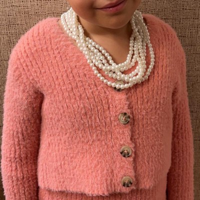 A: Hello Melanie- What a fancy, fun way to dress up a group! This pearl necklace is around 20 inches in length, and are stretchy. We hope this fits! -Erinn