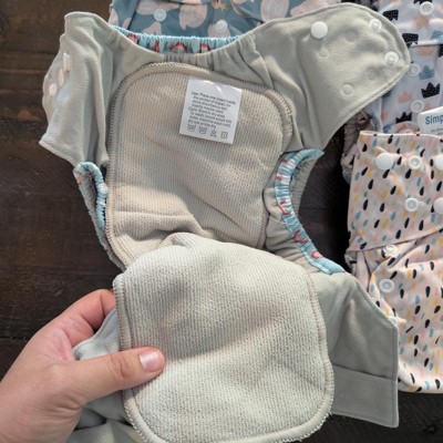 6ct Reusable Cloth Diapers for Newborn Infants Toddlers, Washable Soft Absorbent, Waterproof Cover, 4-Layers Microfiber Inserts - Simple Being