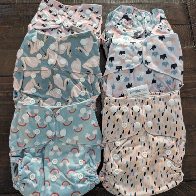6ct Reusable Cloth Diapers for Newborn Infants Toddlers, Washable Soft Absorbent, Waterproof Cover, 4-Layers Microfiber Inserts - Simple Being