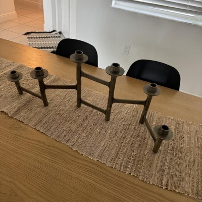 This is such a nice touch to my dining room table. I decorated around it with fall gourds and pumpkins. The metal has a nice texture and it is a good height. I found really cute Magnolia candles (also at Target) to fill the candelabra with. It could also be cute for Christmas with festive candles.
