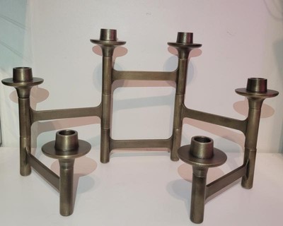 6 count Brass Accordion Candelabra. Works as it is described. Personally I do not like the look. It looks a bit cheap. The candle holders have a different color than the Brass Accordion. You also need to tighten the candle holders since some are not fully screwed on.