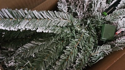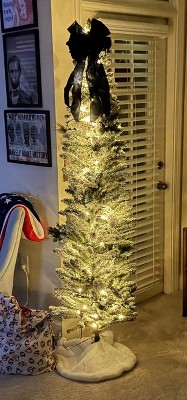 6ft Snow Flocked Pencil Christmas Tree with 250 Warm White LEDs - Slim Artificial Holiday Tree with Metal Stand