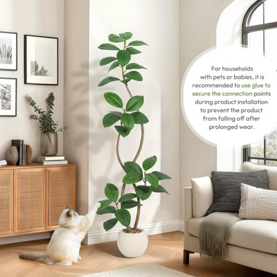 6FT Fiddle Leaf Fig Tree Artificial with 108 Leaves - Realistic Faux Ficus Lyrata Trees in 9" White Planter Pot, Indoor Fake Floor Plants, Gift