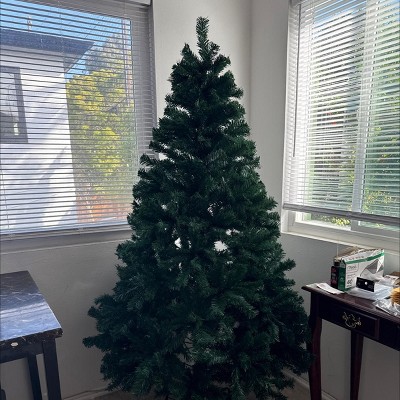 Pretty full fake Christmas tree. I think for the price it is pretty good. There are just areas where it is thicker than others. It is also not lit. The directions had directions on how to light it but the plain green tree does not come pre-lit