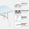 Smooth and waterproof tabletop makes it easy to remove stains for every clean up.The triangular design under the table surface provides better stability, and the high-quality steel material gives the table itself more solid strength.Dimensions (Open):125L* 61w* 73.6H; Dimensions (Folded): 62cm*61cm*9cm Package dimensions: 67*9*71cm UnitWeigh:8.5kg Color:white Three Flexible Height satisfies different needs;Light-weight and fold in half design with carry handle makes this table easy to move and store almost anywhere. Ideal for indoor and outdoor events like weddings, parties for festival, family gatherings, BBQ, even setting up a work station for home office, etc.