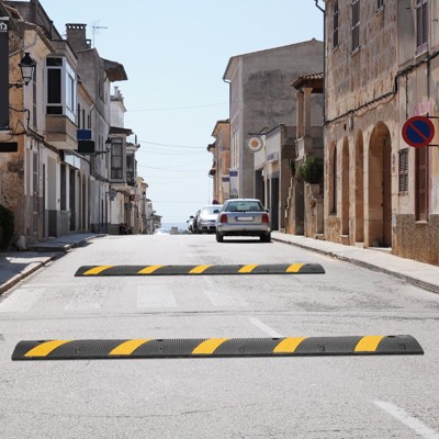 6Ft Speed Bumps with Ends for Road Pack of 2 Durable Recycled Rubber Temporary Speed Bumps Ideal for Car Parking Garage Use Heavy Duty