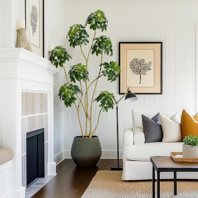 Tall Fake Plant Indoor, Faux Floor Tree Fake Trees in Decorative White Planter with Multiple Trunks Design