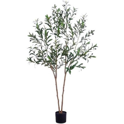 6FT Tall Faux Olive Tree with Black Planter, Indoor Artificial Plant for Home Office & Living Room Decor, Realistic Maintenance-Free Greenery