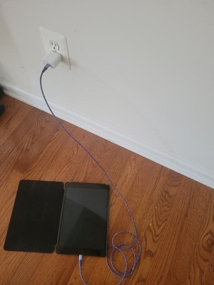 This is a good length for a charging cord. The standard issue three foot cord can be short in many circumstances. This size foot cord is sure to give the needed length. The cord seems quite durable and the purple color is pleasing.