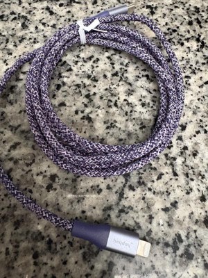 The 6ft USB-C to Lightning Braided Cable from heyday™ in Future Dusk Dark Blue offers a reliable connection for your devices. With a length of 6 feet, this cord provides ample reach for charging and data transfer. The braided design enhances durability, reducing wear and tear. Compatible with Apple iPhone, and select iPads, this cable ensures seamless connectivity.