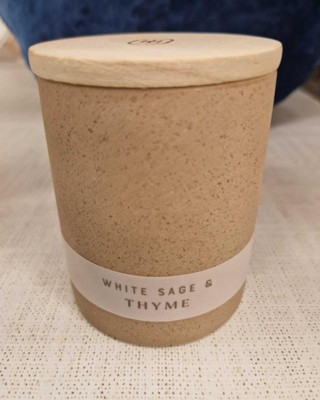 [This review was collected as part of a promotion.] This white sage and thyme candle smells amazing. I didn’t know what to expect, but when I opened it, I was very happy. The container that the candle is in is super modern and cool. It feels like ceramic that has a little bit of sand mixed into it to give it a rough feeling and the wooden top is pretty cool too. The description here says it has three wicks, but there is only one. It must be getting mixed up with the bigger version of this. Overall this candle smells great, so I will be purchasing this again. I received an incentive to write this review.
