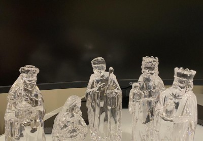 This 6 piece Nativity Set is so beautiful. It's clear acrylic. It looks nice on my gold shelf. The light shining on it helps to show the detail. I can see the face shapes, it's made very well. The pieces can be placed together or spaced out. It's a nice set!