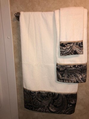 [This review was collected as part of a promotion.] Madison Park Aubrey 6 piece Jacquard towel set includes 2 bath towels (27” x 53”), 2 hand towels (16” x 28”) and 2 fingertip towels (12” x 18”). The design of woven paisley jacquard hem with hues of gold and black along with the white cotton gives your bathroom a touch of elegance. The towels are made of high quality 100% cotton terry material that can be thrown in the washer and dryer. Also this towel set is larger than most towels, very absorbent, soft, and heavier. All the qualities you want in your bathroom towels. After the first wash some of the towels had just a few snags that were not too noticeable. I highly recommend you get this towel set to add guality and beauty to your bathroom. You might also want to get the matching shower curtain and rugs. #MadisonPark #MadisonParkAubrey @reesetisha