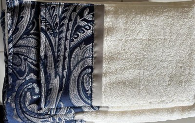 [This review was collected as part of a promotion.] This towel set not bad. It absorbs moisture good,but could be better But one of the bath towels I received had a square pink spot on it. Washcloths are good in gathering lather. The size of the bath towels are wonderful. I don't understand the jacquard print,it has open ends. I feel it should be sewn closed. It's very luxurious and seem to be for display in a guest bathroom which would elegant and perfect.