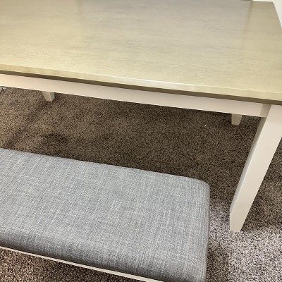 I absolutely love this dining table set!! exactly what I was looking for! I was skeptical about getting this big of a furniture from Target but I'm so glad I did!! The seats are so comfortable and with the bench, we pushed it up against the wall but can slide the table out for additional seating! Love the roomy storage area under the bench as well! Everything feels sturdy and well made. However, some of the predrilled holes were not great and we couldn't get one screw into the seat/back...luckily we improvised and drilled a nail into it for now. It created an uneven wobble but I put 2 furniture moving covers on that leg and it's even and feels sturdy now. That chair could have been made a little better but everything else was fine! I also got it on sale, and with my red card, got that extra 5% so I'm a happy customer :)