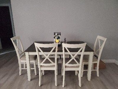 I would have given it zero stars if possible. The set doesn't match the chairs and the table and chairs are completely different. It already has a crack in the seat and holes in the legs. making it weak and unstable. After assembly, it's already wobbly. I strongly advise against purchasing this product. It’s a manufactured non durable wood. Dont get deceived by the price and pictures. It’s not worth buying.