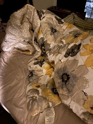 [This review was collected as part of a promotion.] I wanted a comforter set that was pretty but not too girly. This comforter set is exactly that. It is double sided so you can have to floral print which is a beautiful yellow, gray and tan pattern or the tan side with the while whispy details. Both side are beautiful, it's large and thick and provides the right amount of warmth, machine washable and over all good quality.