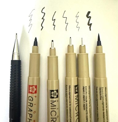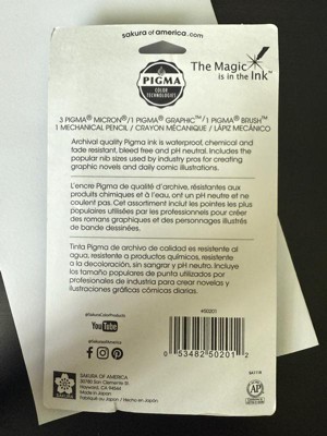 - 6 pack set includes an array of Black Pigma Micron, Brush & Graphic pens plus a Sakura mechanical pencil.