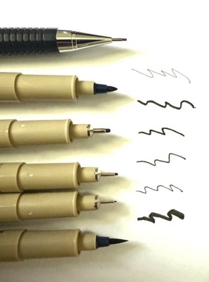 - Professional quality inking pens and drafting pencil used for manga and comic illustration and for general writing or lettering.