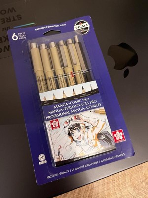 6pc Manga Comic Pro Drawing Set - Black Pigma Micron: Fine Point 0.5mm Porous Pens, Black Ink, 6 Pack
