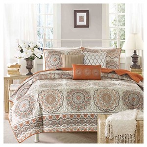 6pc Menara Reversible Quilted Coverlet Set Orange - Madison Park