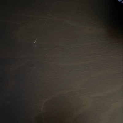 Very cheap finish. Had the dining table for little over 9 months and the finish has discolored and deteriorated over time. The chairs are hard to assemble, become loose, and creak over time. Feels like it will fall apart any day. Do not recommend for the price. Buy real quality furniture instead for the price.