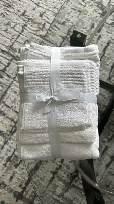 [This review was collected as part of a promotion.] I have had this bath ensemble set for the past several weeks and it is perfect. The packaging is super cute! The set came wrapped in a white bow making this a wonderful gift giving set. Once I unpackaged the set, I was pleasantly surprised with just how luxurious these towels felt. This 6 piece set comes with 2 bath towels, 2 hand towels and 2 wash cloths. The towels and cloths are made from 100% low twist cotton, making them very soft. I love the white color, it is nice and bright and gives off a clean look. The towels and wash cloths are all a great size. They are thick and very absorbent and dry quickly. The ribbed border gives the set a modern stylish look. I have washed and dried these towels multiple times and they continue to look and feel as good as new! I will be purchasing more of these sets as one can never have too many towels. If you are looking for a high quality bath ensemble set, I definitely recommend this one by Great Bay Home.