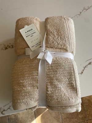 [This review was collected as part of a promotion.] I love the oatmeal color of these towels. I was a little skeptical when they felt rather thin before I washed them. They wash up really nicely and are very soft. They dry your skin off well. I would definitely purchase more