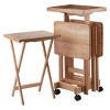 6pc Snack Table Set - Natural - Winsome: Hardwood Construction, Foldable with Wheeled Storage Frame