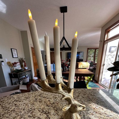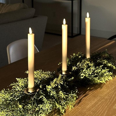 [This review was collected as part of a promotion.] These flickering taper candles are amazing! They are so realistic and life like. I love all the details — the size, the ribbed candle itself, and the life-like point of the flame. I used them as wall decor but they could absolutely be used as centerpieces and no one would be the wiser! NOTE you do need to press the button on the bottom of the candles for them to work, which took me a minute to figure out!