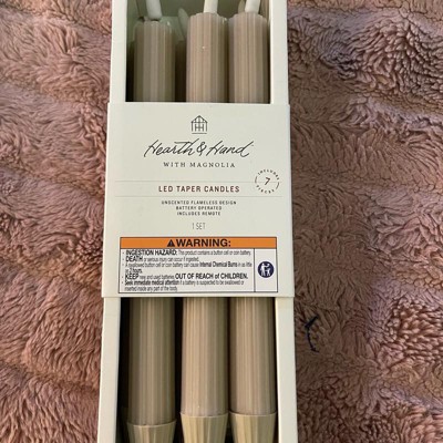 [This review was collected as part of a promotion.] I was really excited to purchase these candles for the holidays. I love all the Hearth & Hand products and these are no exception! There are no worries about the candles melting down, they give off a warm glow and the best part is that these come with a remote control so you can turn the candles on and off whenever you want. These are going to look great on my mantle - now I just need to find the perfect candleholder!