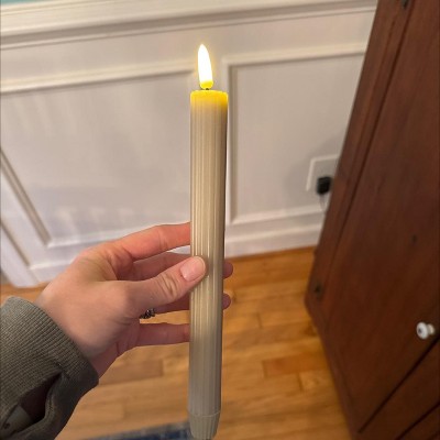 [This review was collected as part of a promotion.] This set of tapered candles is just okay. I was looking forward to receiving them because I love flameless candles as they give such a cozy vibe in the winter. These felt flimsy and cheaply made. They wobbled a bit in the candleabra I used and the flame part doesn’t stay straight. They look okay from a distance though. Each candles takes 2 AAA batteries so be prepared to have those on hand. I received an incentive to write this review.