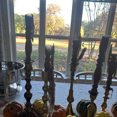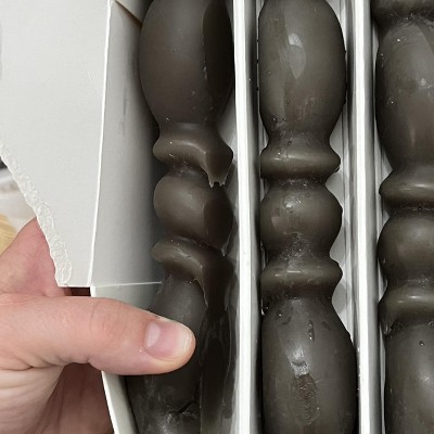 Beautiful candles but whoever packed these with two other candles and a heavy brass candelabra without padding wasn’t very smart. Every candle is snapped in half and has a lot of big dents from the brass hitting the wax. Hopefully I can get these replaced.
