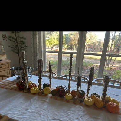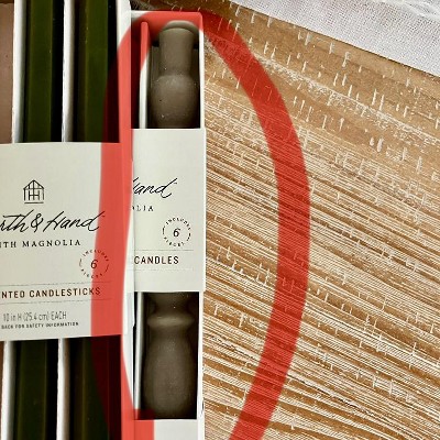 Illuminate your home with a warm glow using these 6-Pack Spindle Taper Candles from Hearth & Hand™ with Magnolia. Made of paraffin wax, these unscented candles boast a spindle-shaped design to add a touch of vintage charm to your space. Designed in a gray hue, these taper candles burn for approximately 6 hours.