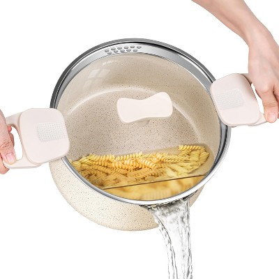 - DRAIN WATER EASILY - This pasta pot features twist-to-lock handles and a strainer lid with 2 straining sizes, so you can easily strain out the water by twisting the handles. No strainer needed!
