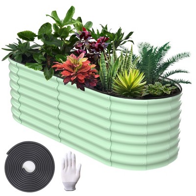 6x3x1ft Galvanized Raised Garden Bed Kit, Oval Raised Beds with Open-Ended Base, Metal Planter Box for Vegetables, Flowers, Herbs & Fruits, Green