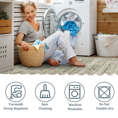 TROPOW Washable Low Pile Boho Rug for Living Room, Bedroom, Entryway, Dining Room - Vintage Distressed Non-Slip Carpet
