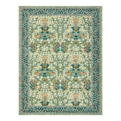 6x9FT Christmas Area Rug, Xmas Tree Print Foldable Carpet with Non Slip Backing, Low Pile Stain Resistant Floor Carpet for Living Room, Green