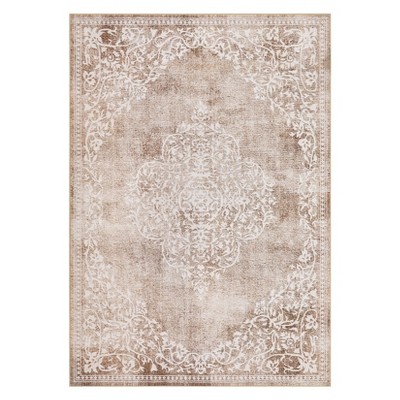 6x9FT Modern Washable Area Rug, Jungle Animal Print Nursery Bedroom Rug with Non Slip Backing, Low Pile Stain Resistant Floor Carpet, Beige