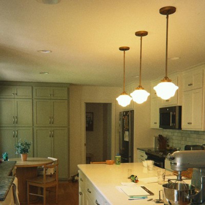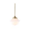 Though originally used in pharmacies because of their simple upkeep -- the glass is simple to dust, bulbs easily changed from removing the shade from below -- this pendant's silhouette is perhaps most famously known by students of the 1950s as "the schoolhouse pendant" thanks to a large government order that made this the official light of chemistry labs until the mid-70s when fluorescents were installed (forgive them!). We took inspiration from the original -- gracious curves, simple upkeep, and adjustable drop -- because if there is one thing we have learned, it's that great design never goes out of style.