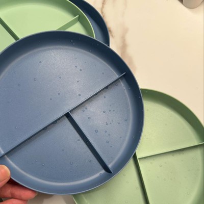 These plates are perfect for partitioning off the different foods and the size is just right for my kids. They have done well in both the microwave and dishwasher.