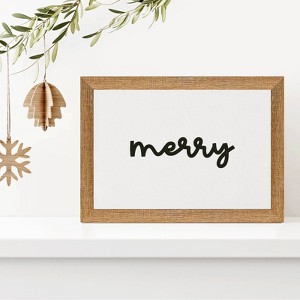 7" x 10" Merry Script Rustic Brown Frame Wall Canvas - Petal Lane: Vintage Style, Digital Art, Polystyrene Frame, Freestanding