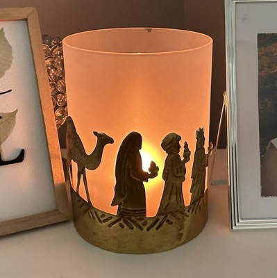 7"x5" Pillar Metal Three Wise Men Christmas Candle Holder Gold - Wondershop™: Frosted Finish, Tabletop Decor