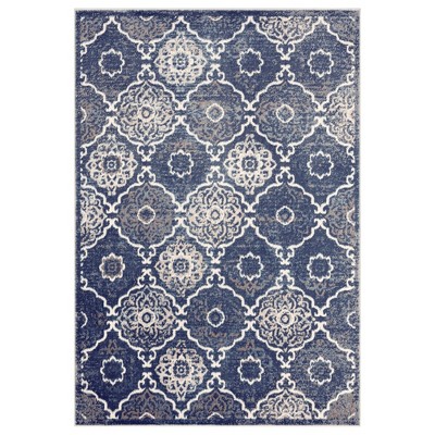 7'10" x 10'2" Tripoli Mateo Indoor/Outdoor Rug Dark Blue/Cream - Home Dynamix: UV & Stain Resistant, Woven