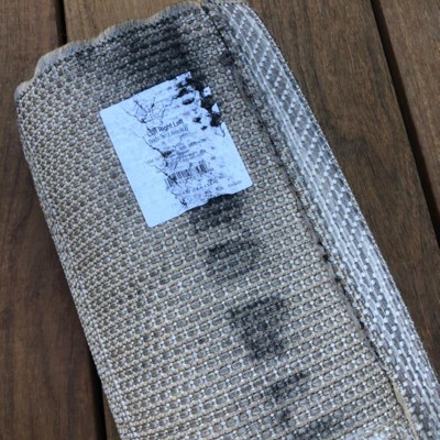 Arrived filthy and packaging ripped. The rug is nice, but it’s all dirty and black. The delivery guy was a jerk and threw it on our porch. I typically don’t dock stars for delivery issues, but you are who you associate yourself with. Also we got the “grey” color way which is far more tan/taupe when you put it on concrete which is a true grey.