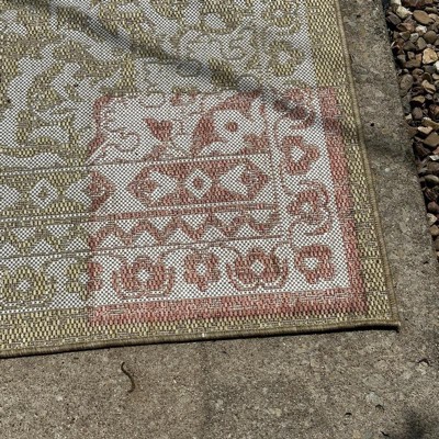 Happy to finally find something that matched new outdoor lounge chairs. Laid it out and right away noticed it's no where near as dark as pictured... it was closer to pink. Fine not that big of deal. 2 weeks later and it's fading significantly. The "rust" is transitioning to yellow. Extremely dissatisfied after being so happy to finally have outdoor space finished. Now have to spend more money on new rugs... plural since I bought the 8 by 10 as well and figure it won't be long for that one to go downhill.