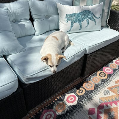 A: This rug is ideal for patios, screened porches, and other outdoor entertainment spaces.